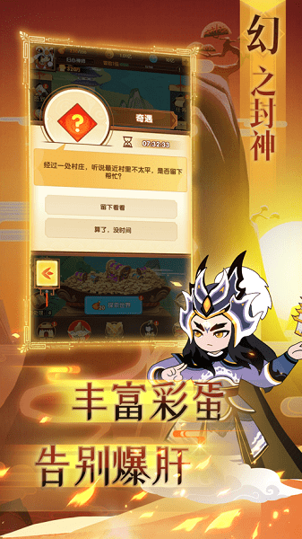 幻之封神是一款仙侠题材的游戏。实时战斗游戏的幻想神话的宏伟世界观,所有秘密地点的副本均具有明确的难度系数划分。必须满足相应的要求感受精彩的游戏内容,合理的运用游戏的难度可以不断增强关卡挑战的对决,搭配真实的游戏剧情挑战将会改善高难度游戏的内容,更多真实游戏的奖励可以享受高等级的游戏对决。