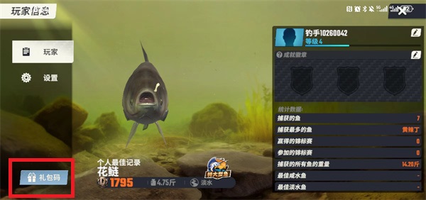 2、在个人信息主页界面,我们直接就可以在左下角看到【礼包码】功能,点击此功能进入到兑换码输入界面;