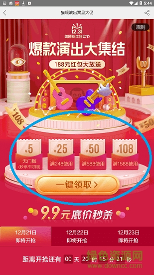 三、进入页面后即可领券优惠券抢购演出门门票了。