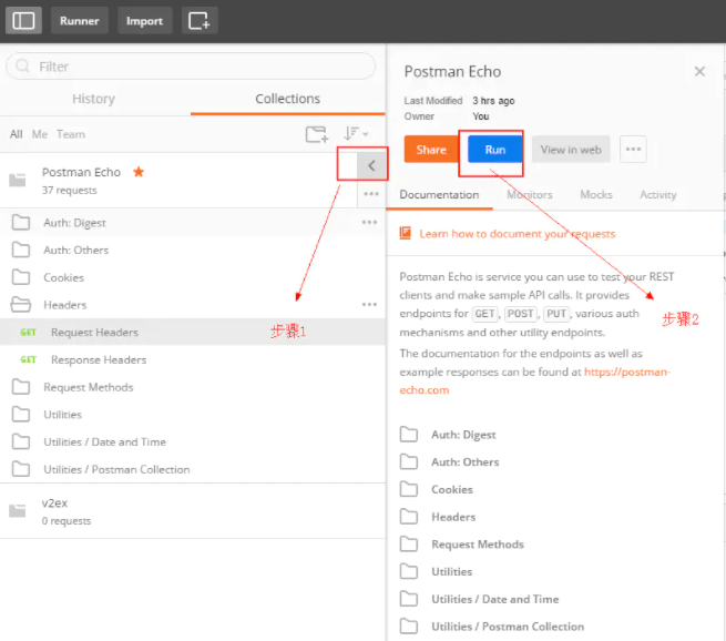 一键运行测试用例:你可以选择你要运行的collection或者里面的文件夹进行运行