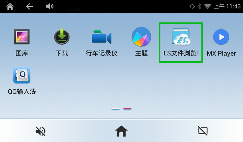 4.把U盘插到安卓车机的USB接口上,并找到“ES文件管理器”