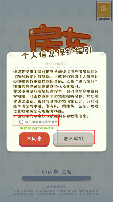 1、首先你需要通过本站下载房东模拟器游戏,并在首页上点击进入,需要你提前同意一些隐私项目,如下图;