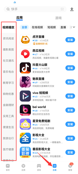 3、应用分类中,将所有的应用软件根据不同类型进行归类,查找更加方便,找到需要的软件直接点击右方的“下载”按钮即可一键下载;