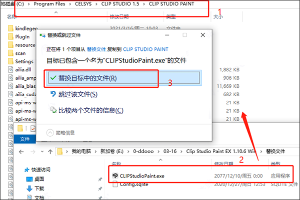 6、将“CLIPStudioPaint.exe”补丁复制到软件CLIP STUDIO PAINT文件夹下,并进行替换;