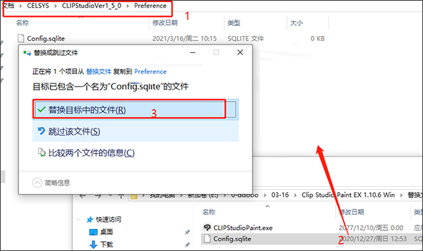7、然后将“Config.sqlite”复制到到文档\CELSYS\CLIPStudioPaintVer1_5_0\Preference进行替换;