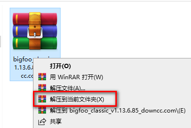 1、在本页面下载魔兽世界怀旧服大脚插件包,得到一个名为“bigfoo_classic_v1.13.6.85_downcc.com.zip”的压缩包