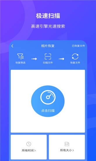 相片恢复可快速恢复误删照片,功能强大,专注于移动设备数据恢复服务,手机上轻松完成恢复,希望为用户提供挽回一道屏障,尽我们所能为您找回遗憾和损失。