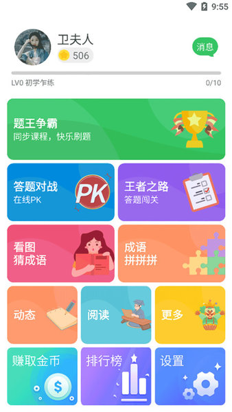 题王争霸答题王者app通过各种各样的趣味小游戏来考验玩家对于各种知识的掌握,看图猜成语、竞技pk、成语拼拼拼等多种模式任你挑选,加深大家对于各种成语知识的理解性记忆,没有任何限制让你随时都能开启体验!