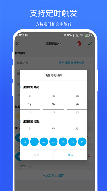 用户可以设置定时时间执行自动化,如:早上八点钉钉打卡,中午12点设置静音,晚上九点打卡飞行模式等等。