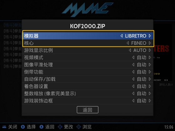 4.因部分游戏roms原因,将下图游戏列表中特殊标注的游戏,对每个游戏分别修改至相应模拟器核心。