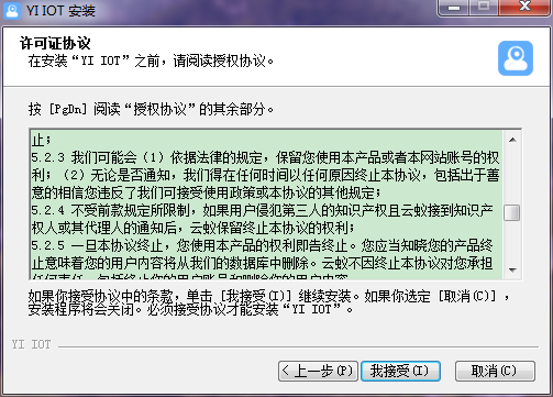 3.阅读和确认安装协议之后点击我接受进入下一步