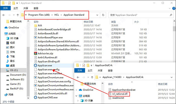1、下载解压缩,得到获得appscan10中文版原程序和对应补丁;