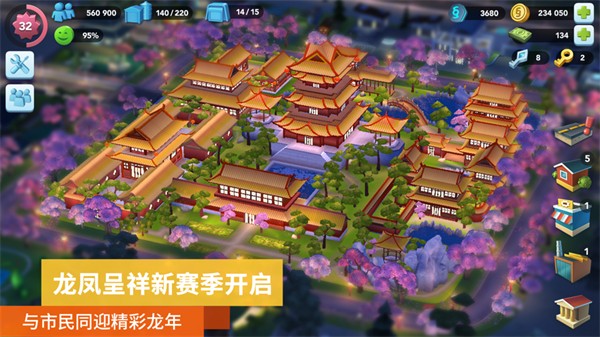 随着您的城市不断发展壮大,越来越多的中国元素也将逐步展现!除了游戏内的国风角色之外,繁多国风建筑随之映入眼帘。金碧辉煌的宫殿,古韵十足的亭台楼阁,巧夺天工的中式园林,无不为您营造出城市的华美与大气!