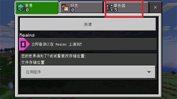 2、在进入游戏世界之前,点击右边的【服务器】进入到对应界面之中;