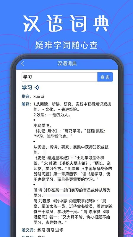 新疆普通话宝典app是给用户提供普通话学习的软件,里面的功能种类都非常的齐全,有任何不懂的直接查找汉语词典,每次复习完可以进行随堂模拟考试,这样能够巩固您每天学习的知识,非常的不错。