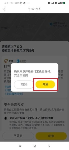 3、进入打车功能以后需要用户同意一些协议授权