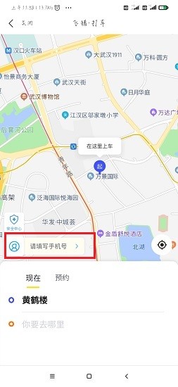 5、进入打车页面以后,需要用户绑定电话号码