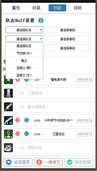 选择好了职业后,开始选择自己目前职业的装备和增幅细节后点击计算。