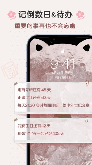 将生活中期待的倒数日和待办事项记录到锁屏壁纸上,有了布丁提醒你,不管啥事再也不会忘啦。