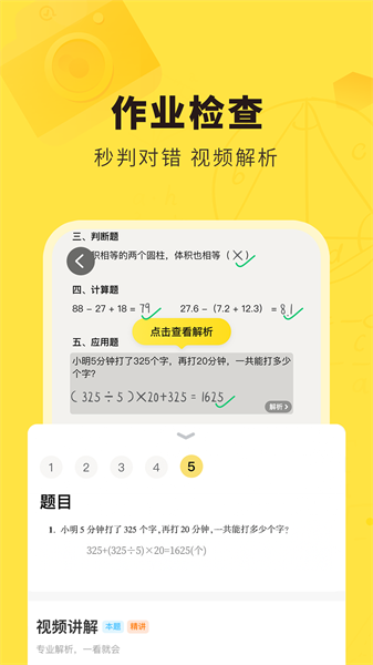 3、提供小学大量课本练习册解析,写完作业自己检查,很方便。
