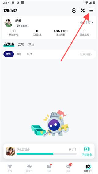 2、在我的游戏栏目中继续点击右上角进入设置界面