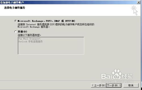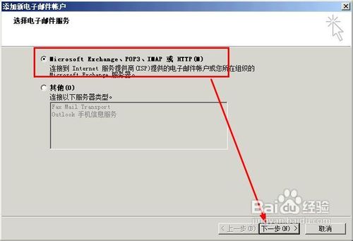 3、选择电子邮件服务,一般都是要选择第一个选项,因为主流的邮箱都是这个模式的,我们就选择第一个模式,点击下一步按钮。