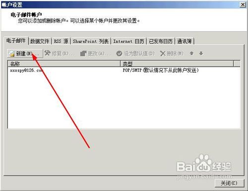 7、切换到【电子邮件】的节目,然后点击【新建】按钮,打开新建邮箱的对话框