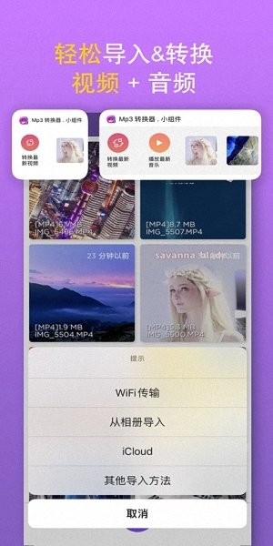 mp3转换器 让您从各种格式视频中提取各种格式的音频。 其操作极其简单,且转换后的音频文件可以保存到您的手机中或者设置为铃声。