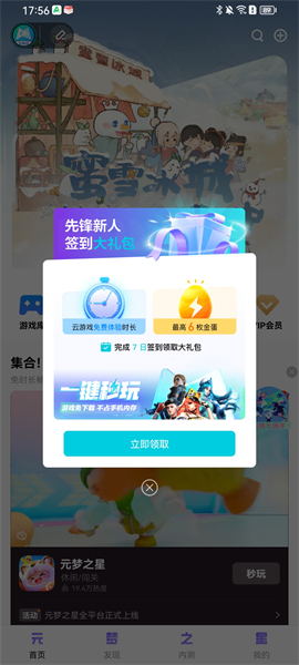 1、首先我们通过本站下载安装好软件后,点击进入,新人首次登陆会赠送新人大礼包,完成七天连续签到还会额外赠送大礼包;