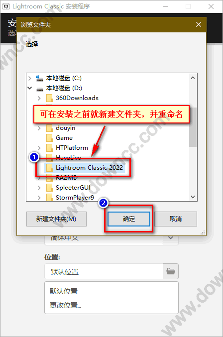 4、在除了c盘的其他盘新建文件夹,我是安装在d盘,文件夹可在安装之前新建,命名按照自己喜好来就行了。选择好指定的文件夹之后点击“确定”