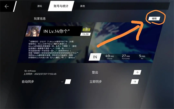 2.打开设置后,点开帐号与统计,再点击“编辑”按钮
