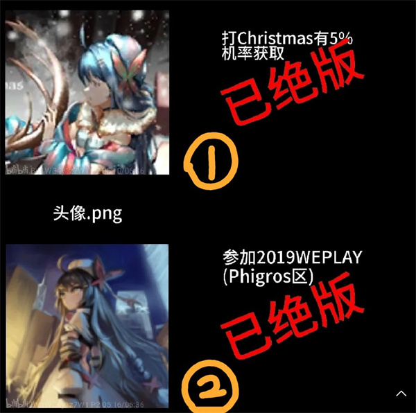 在phigros2.0.0版本前,有一个商店系统,当时的头像可以在那里用data购买或抽奖获得。但是在2.0.0版本更新时,商店系统被删除了,位于商店中的一部分头像也随之被删除。所以这一部分头像便成了绝版头像。目前唯一的获得方式为把phigros降低至2.0.0以前的版本并进入商店购买。