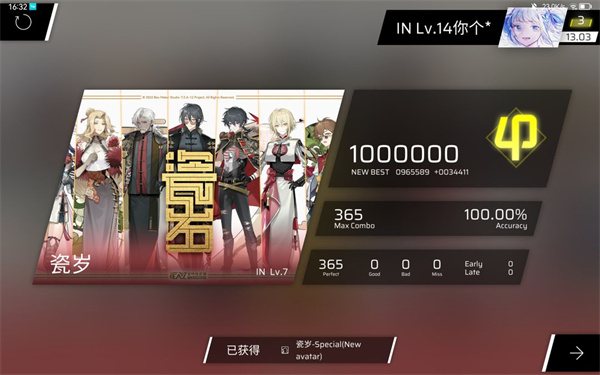 如上图,在打完曲目后获得限定头像时,结算界面下方会显示“xxx-Special(New avatar)”字样。