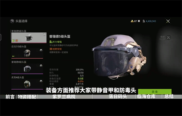 1、前期装备方面需要选择适合的头盔和防护装备,南风港大佬多前期装备很重要;