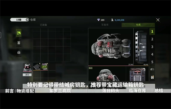 4、特别注意!!!一定要带上结城房的钥匙,推荐带宝藏运输箱的钥匙可以打卡宝藏获得物资;