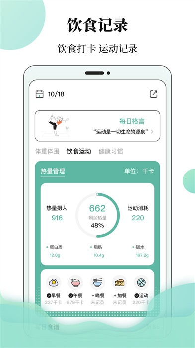 4、【热量查询】方便食物卡路里的查询、热量查询,轻松分析卡路里,让你饮食打卡更便捷。还可查看健身食谱、减肥食谱;