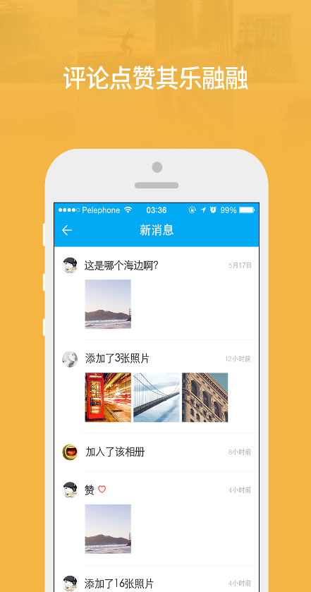 宝宝的成长照片、旅行的合影照片,时光相册可以一键批量分享给亲朋好友;邀请家人共建多人相册,评论点赞其乐融融。