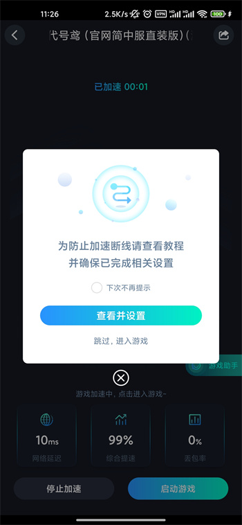 3、在加速的过程中等待,跳过,直接进入游戏启动;