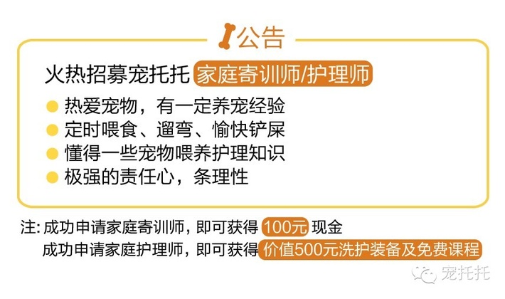 通过宠托托,您可以找到符合您要求的寄训家庭,让寄养、训练成为宠爱传递的桥梁。通过宠托托平台的信用安全机制,保障宠物主人及寄训师的权益,让宠爱持续不断地发光发热。