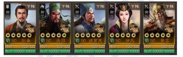 你问为什么不是五虎将?在这里游戏设定还是和历史不一样,所以综合阵容是比较合适的,这一套阵容成型之后,就可以有及其强大的战斗能力,开荒就是小意思。
