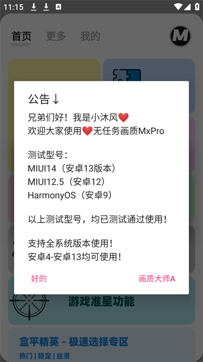 画质MxPro软件是一款可以为用户们提供优质的画质更改系统,在这里可以让游戏得到更强大的画质分辨率更改,方便玩家们可以在整体游戏中得到更清晰的画面查看,来发现到隐藏在身边的敌人,让吃鸡可以变得更加简单。