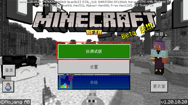 1、打开游戏之后,就可以看到游戏登录页面,在其中点击【玩测试版】进入到游戏环节;