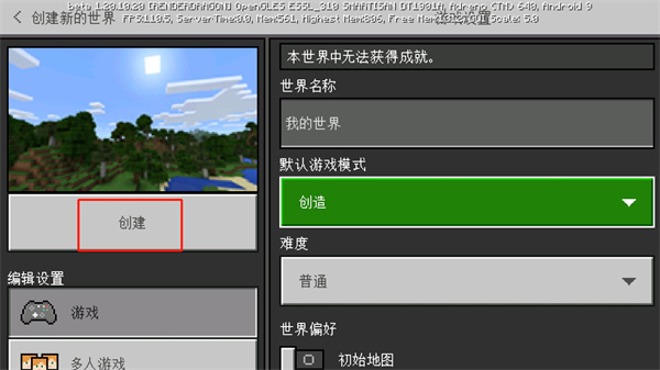 5、最后设定完成之后,就可以点击【创建】完成创建,等待加载完成就可以进入游戏。