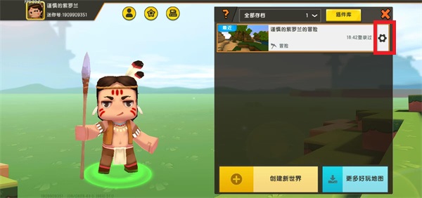 2、在进入到游戏创建世界页面之后,我们可以看到会有世界存档,点击存档右边的【齿轮】;