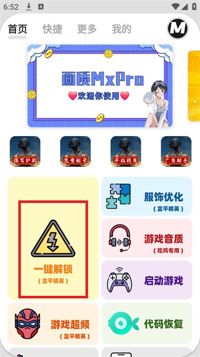 6、为了让玩家快速体验软件的威力,该软件提供了一键开启自动修改画质的功能。