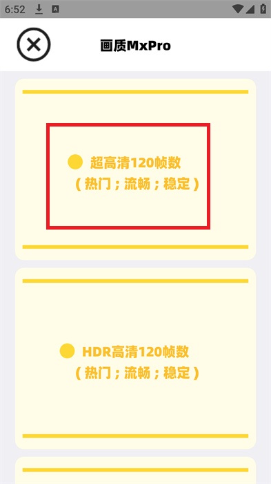 2、在解锁帧数的界面中,我们只需要点击【超高清120帧数】就可以打开功能,然后启动游戏;