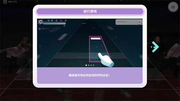 1、音符中最普通也是最常见的就是一个普通的【方框音符】,只需要瞄准音符到达判定线的时间点击即可;