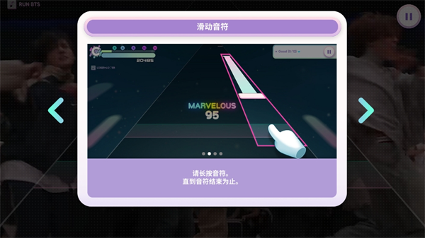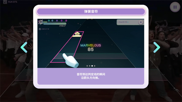 3、第三类是个非常特殊的音符叫做弹簧音符,这个音符需要在到达判定线的瞬间沿箭头方向推才算成功;