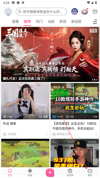 1、打开bilibili客户端后,在右下角进入【我的】个人中心