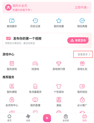 2、在个人中心中找到游戏中心栏目,点击查看更多